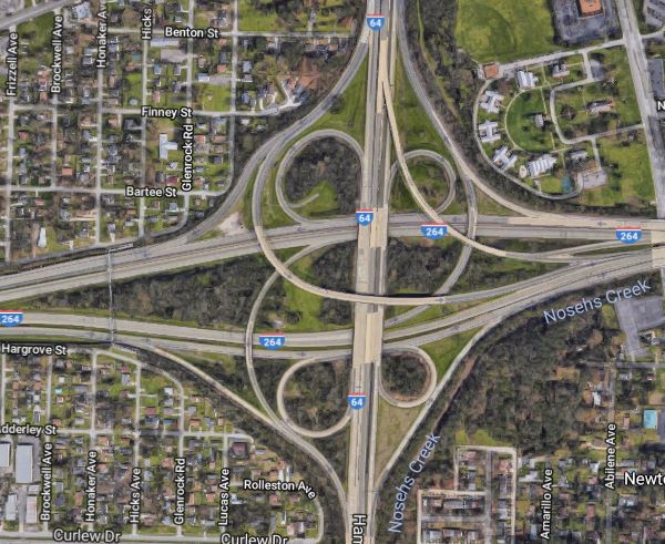 Amazingly enough, the area where Jet and the countless other crows assemble for their roost is at the heart of a busy interchange in Virginia Beach. The image on the left is a crow’s-eye view of their gathering place.