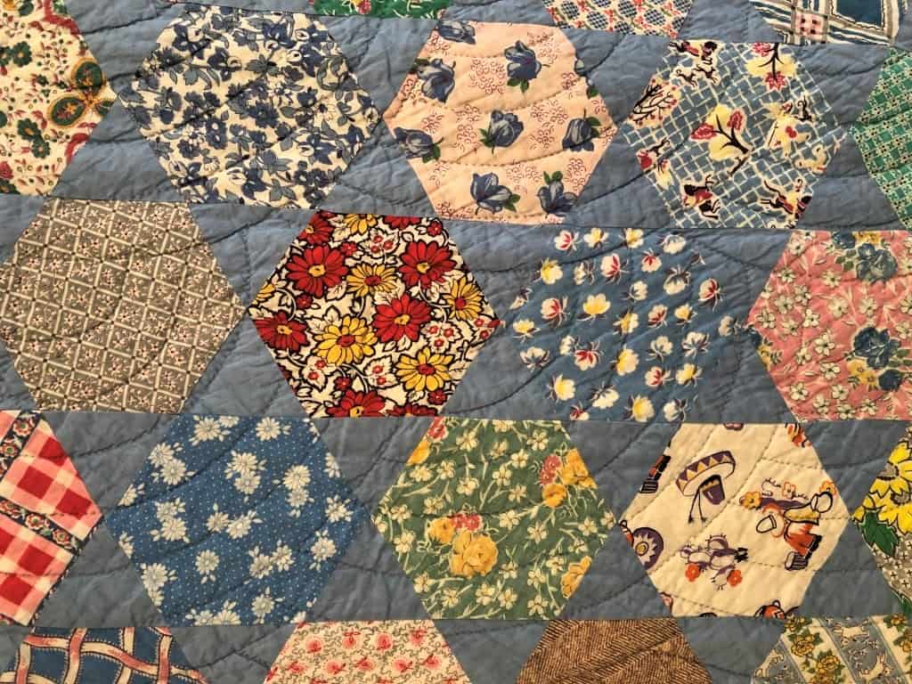 “Taisie sewed them pretty quilts you girls have on your beds.  She used cloth from feed sacks to make a lot of them patches.” (page 77)